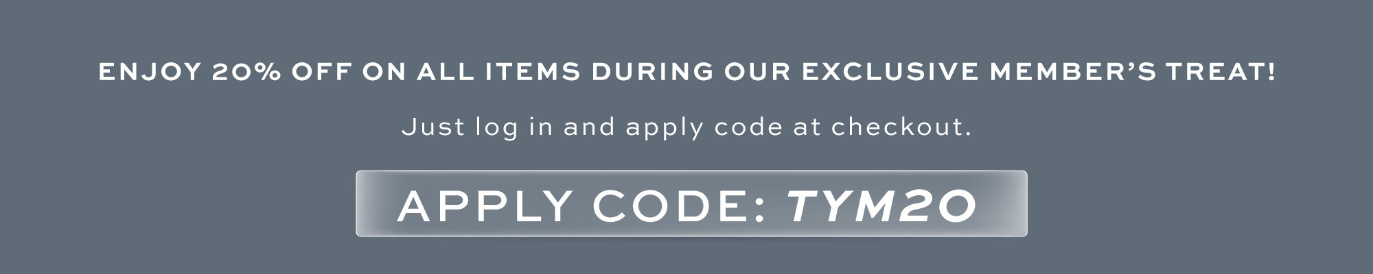 - Enjoy 20% off all items when applying code TYM20 at checkout.