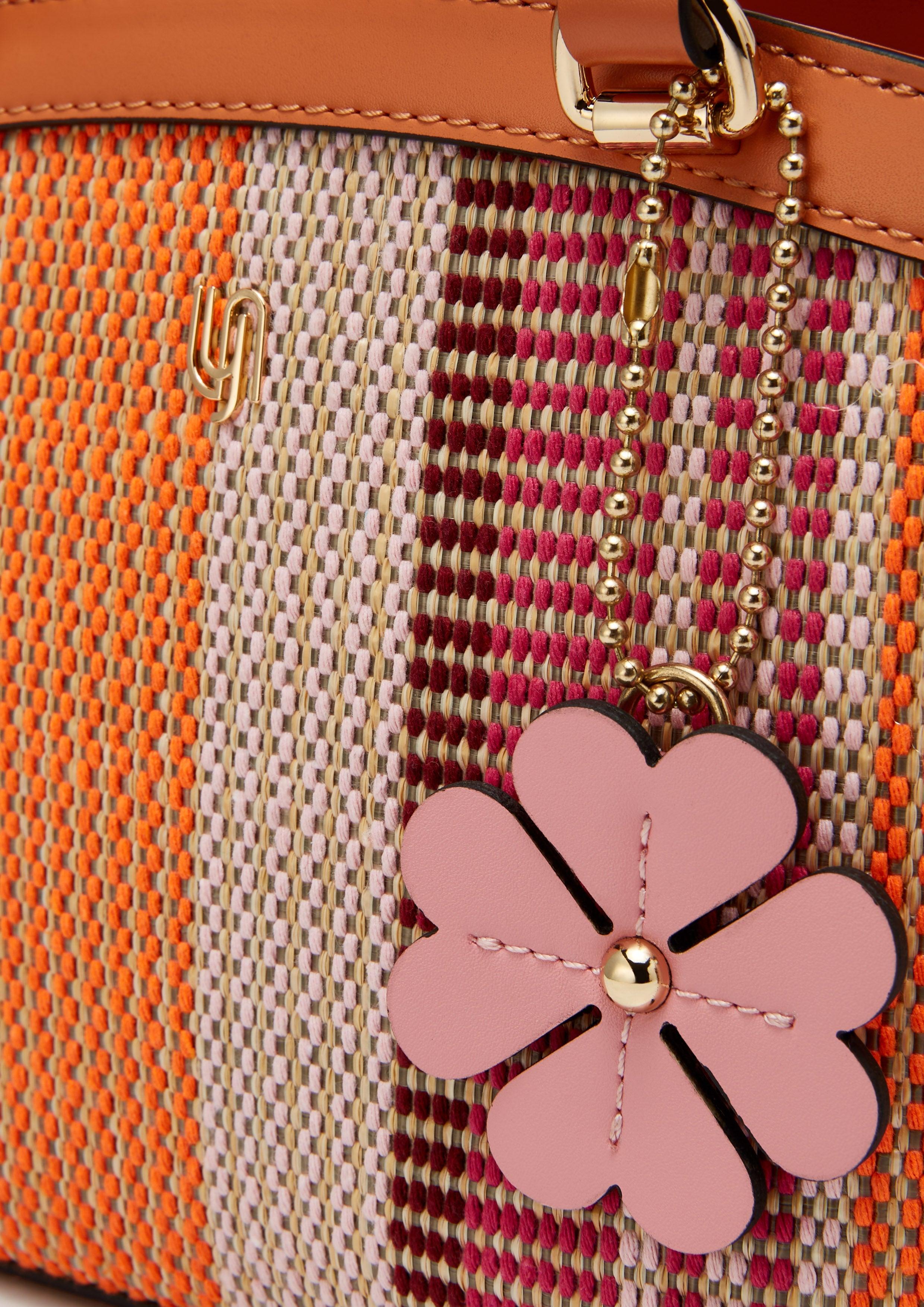 Celebrate playful sophistication with The Garden Infinite S Top Handle Bag, a chic accessory that blends artisanal charm with modern refinement. Crafted in a structured petite silhouette, this top handle bag showcases a textured surface with vibrant vertical stripe patterns, complemented by smooth trim details for a polished touch. Adorned with a whimsical floral charm and signature logo hardware, it features a spacious main compartment with a secure zip closure and an inner pocket for organization. Complete with a detachable shoulder strap, this piece easily transforms from an elegant handbag to a stylish crossbody, perfect for both leisurely outings and polished occasions.