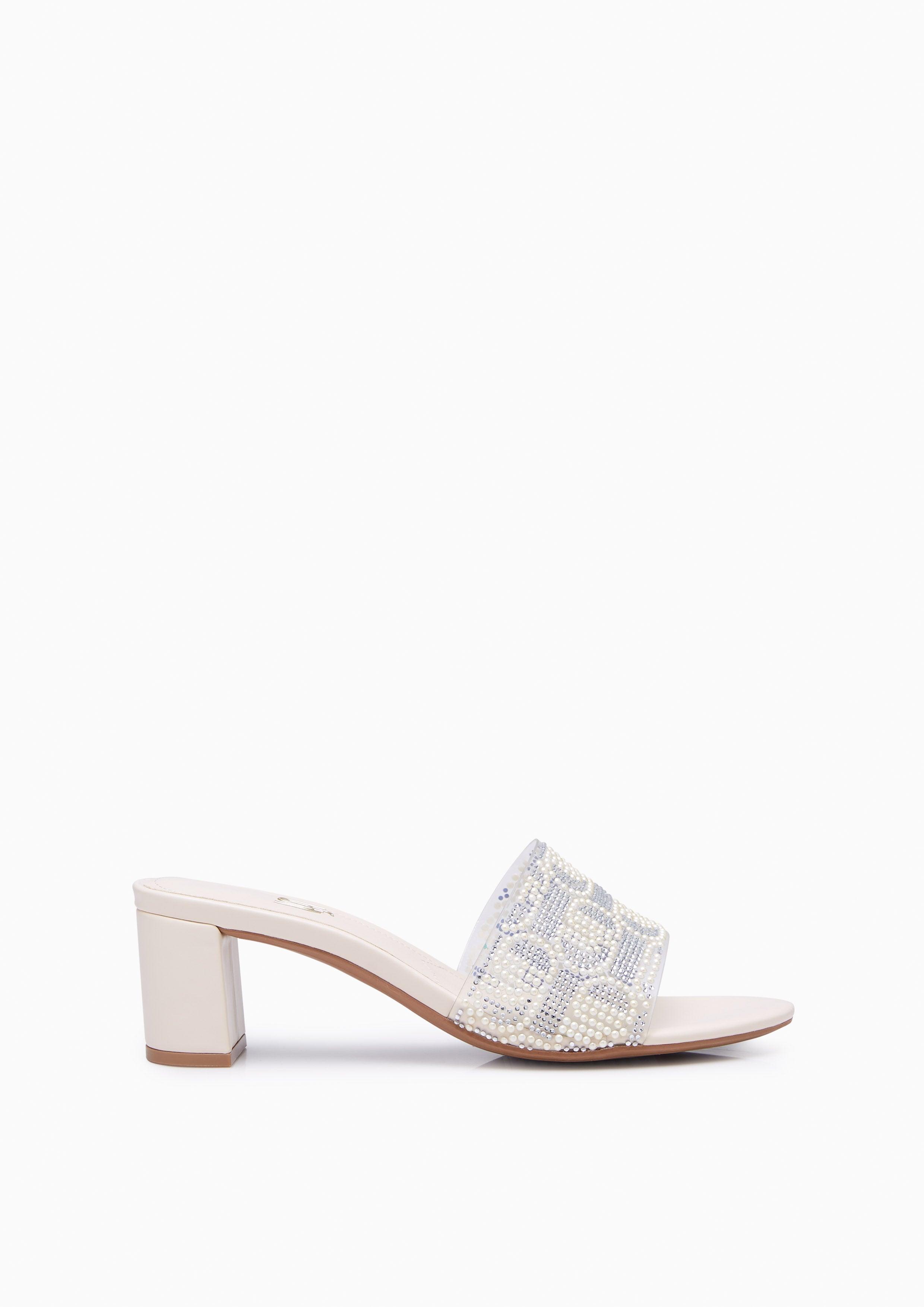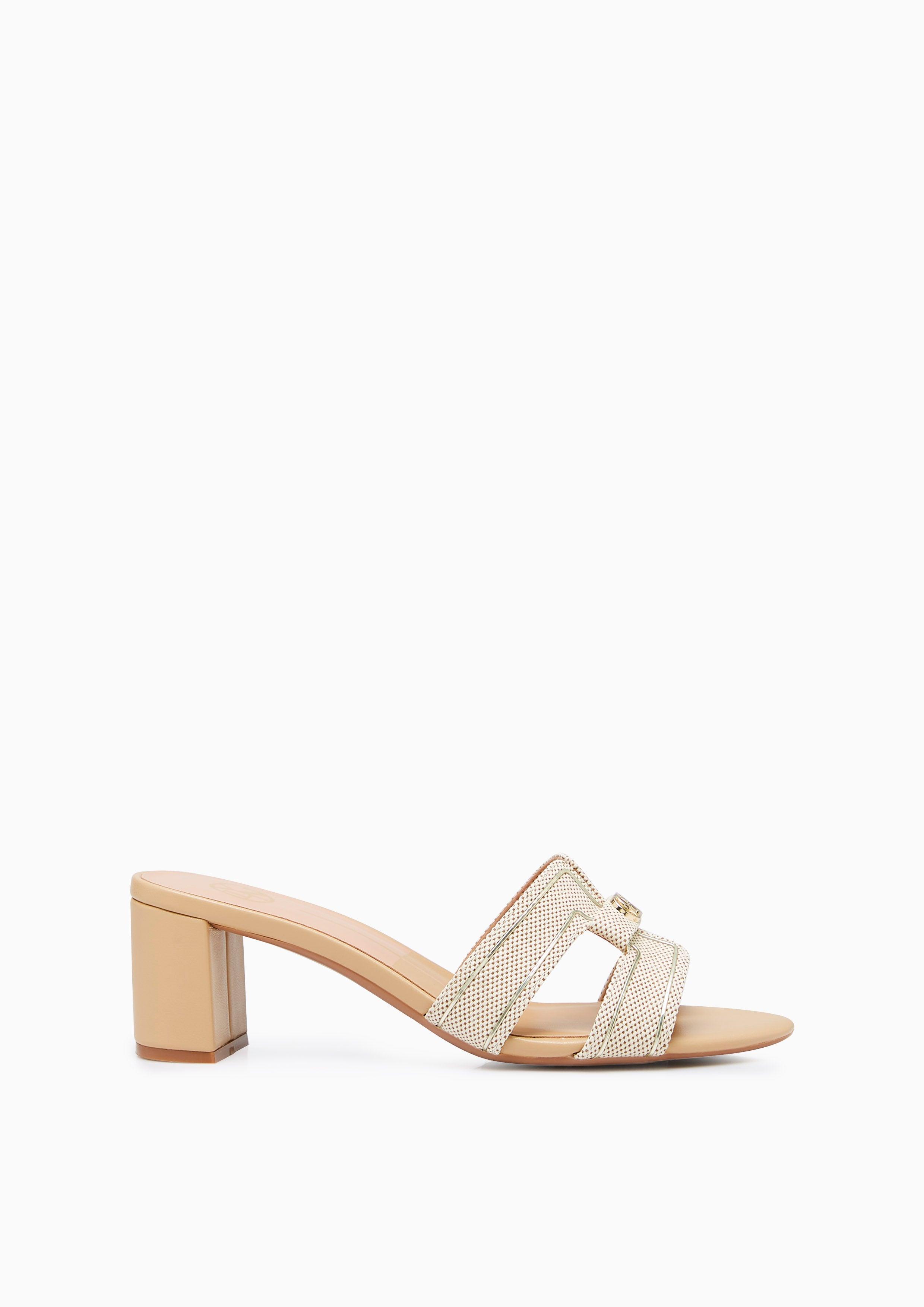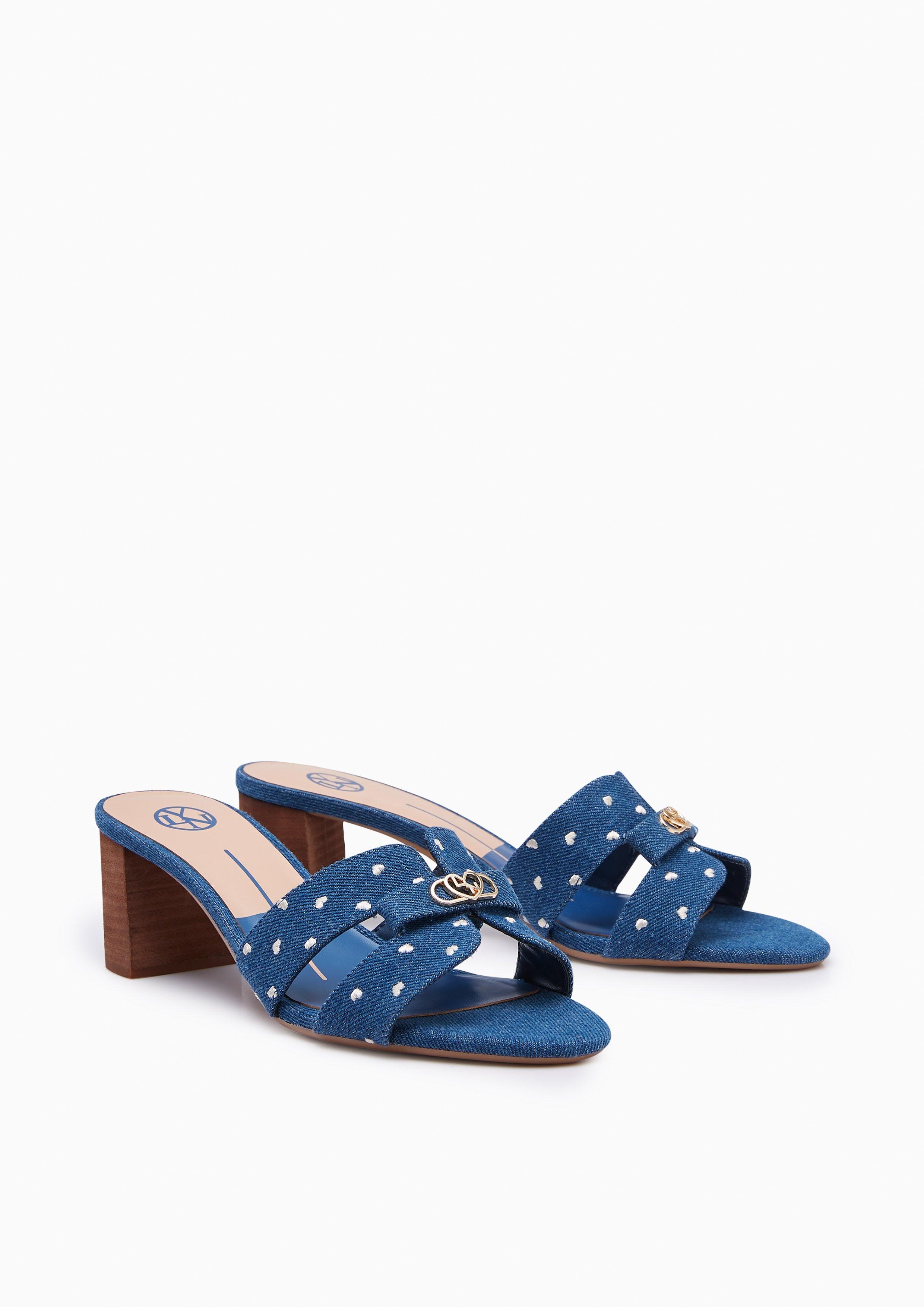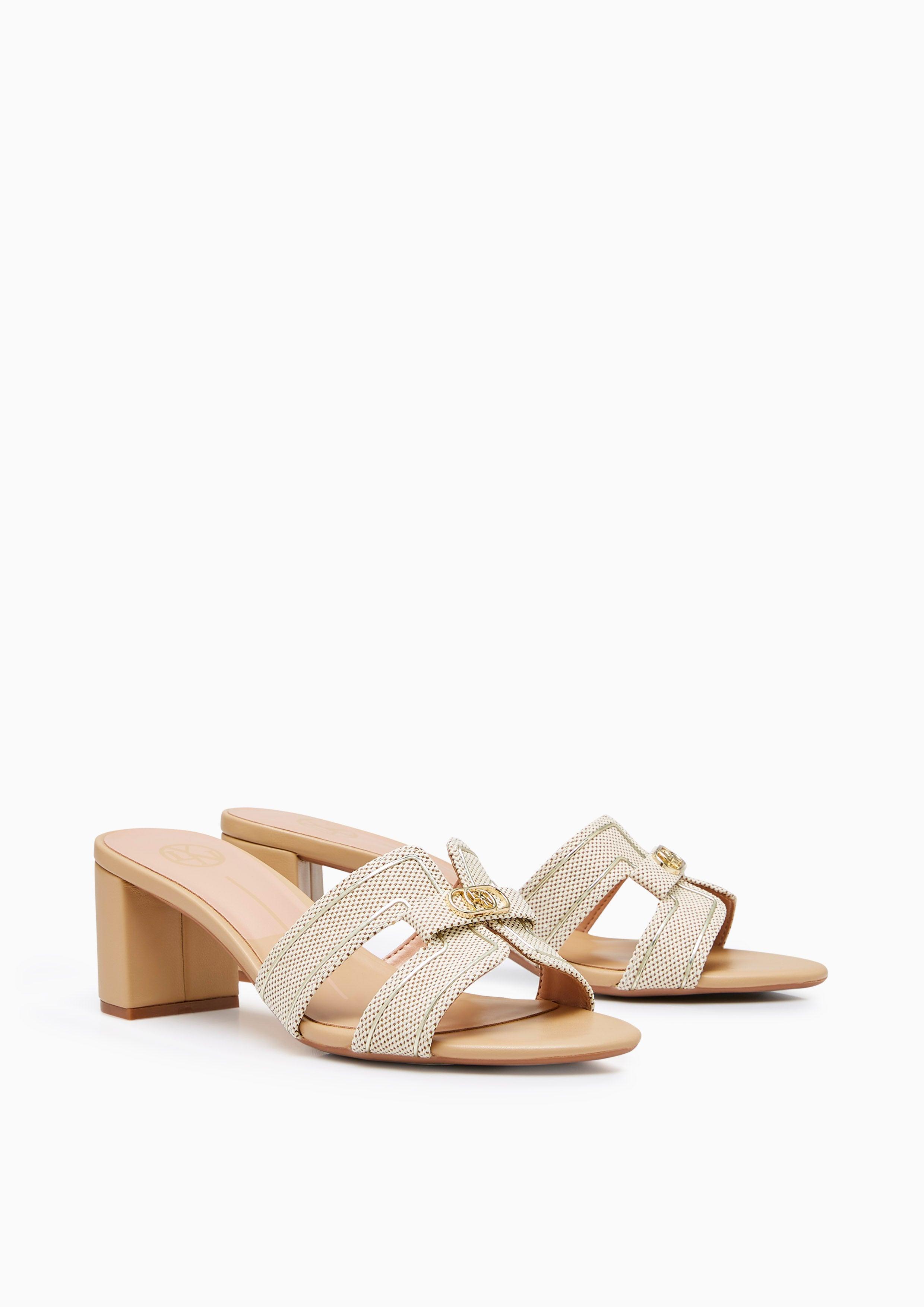 Experience refined grace with the Hey Lovely Canvas Mid Heels. These elegant mules feature a textured canvas upper with delicate heart prints, beautifully arranged in an H-strap design and adorned with Lyn's signature golden heart-chain emblem. The natural-toned stacked heel complements the soft canvas texture, while the base adds a feminine touch. Perfect for both daytime sophistication and evening elegance, these mules embody Lyn's commitment to versatile, polished style.