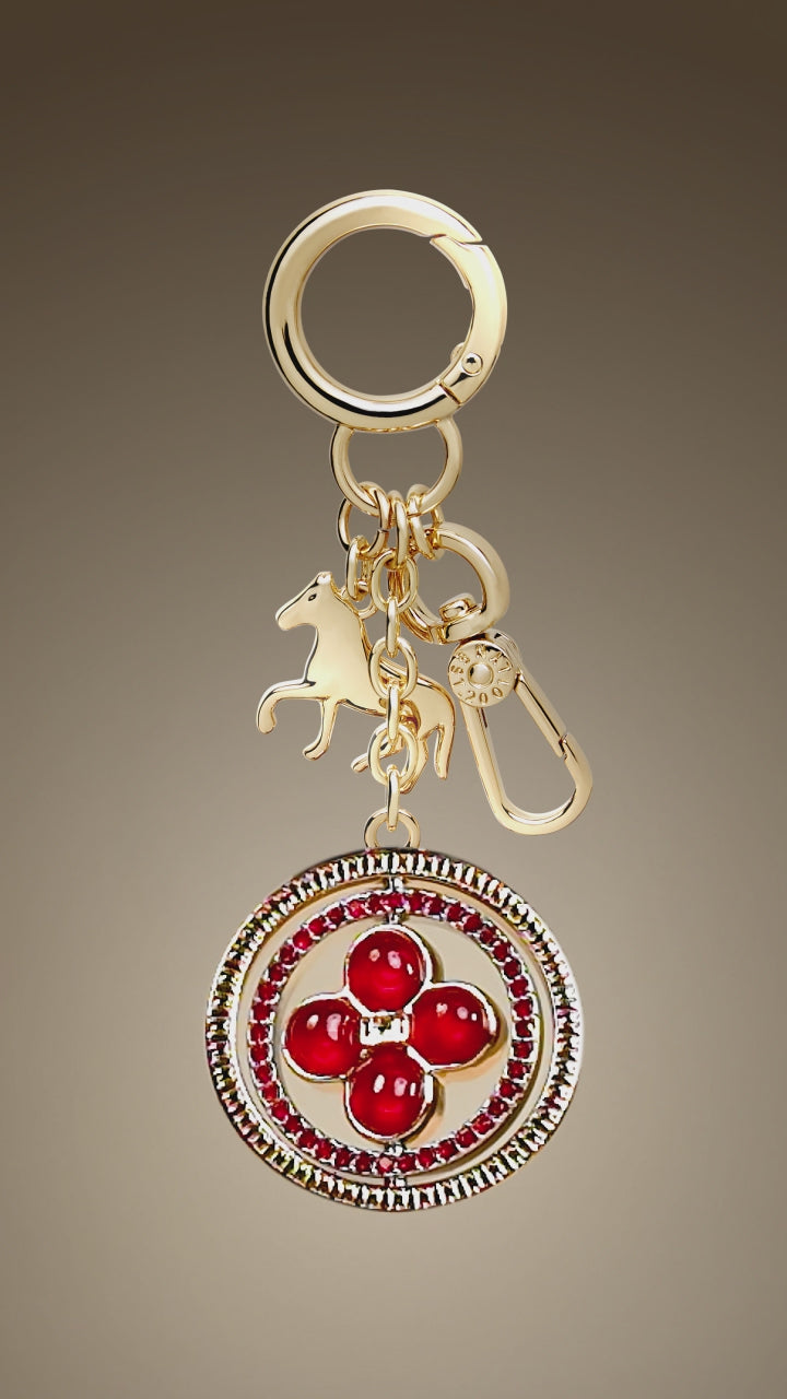 ดีไซน์โดดเด่นด้วย ใบ Clover สี่แฉกหมุนได้ แทนความหมายของ ศรัทธา ความหวัง ความรัก และโชคดี ผสานกับ จี้รูปม้าอันสง่างาม ที่เปี่ยมด้วยพลังและความสง่าผ่าเผยในทุกมุมมอง